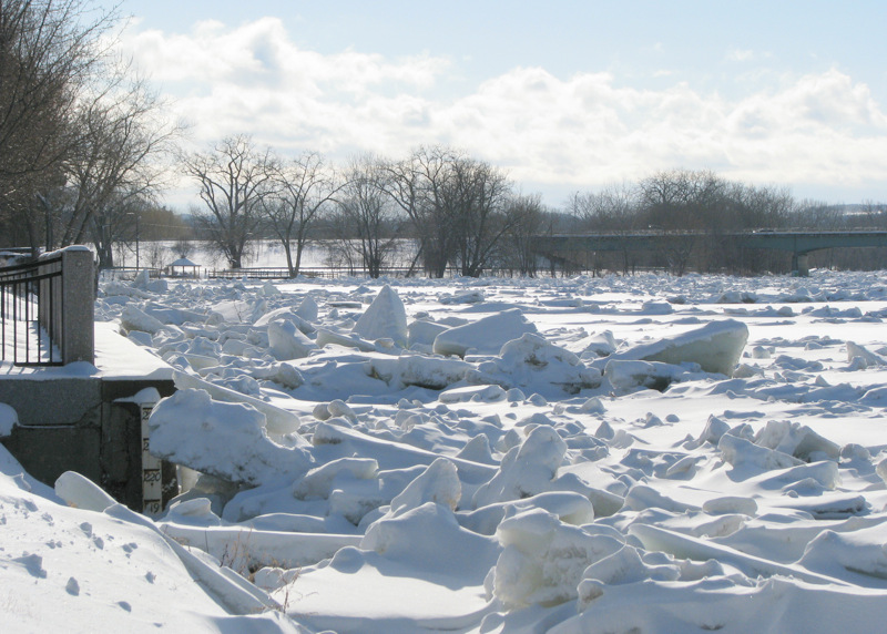 – ice floes jammed along Riverside Park – March 2011 –