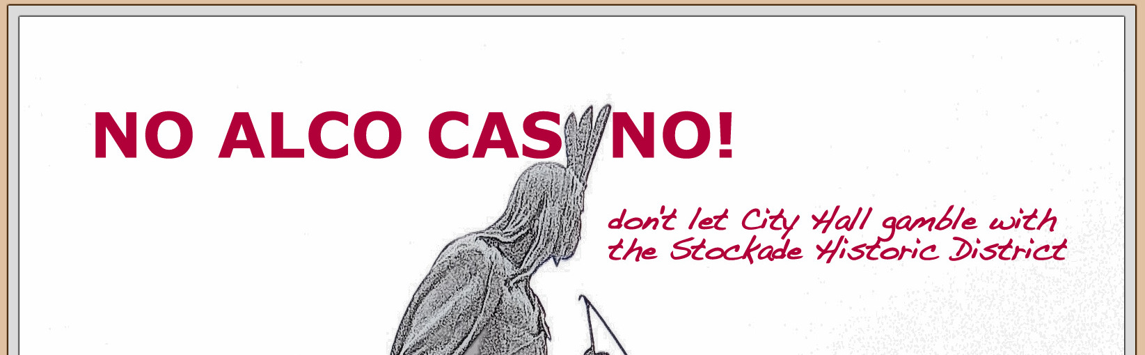 Note: Point Two of our STATEMENT in OPPOSITION to the Schenectady Casino [at pages 3-8] explains why the risk of damage to the Stockade Historic District and its residential quality (mainly due to a likely increase in crime and a significant increase in traffic) is too great to allow a casino to be located nearby. The Statement also addresses four other significant reasons to oppose the Schenectady Casino.