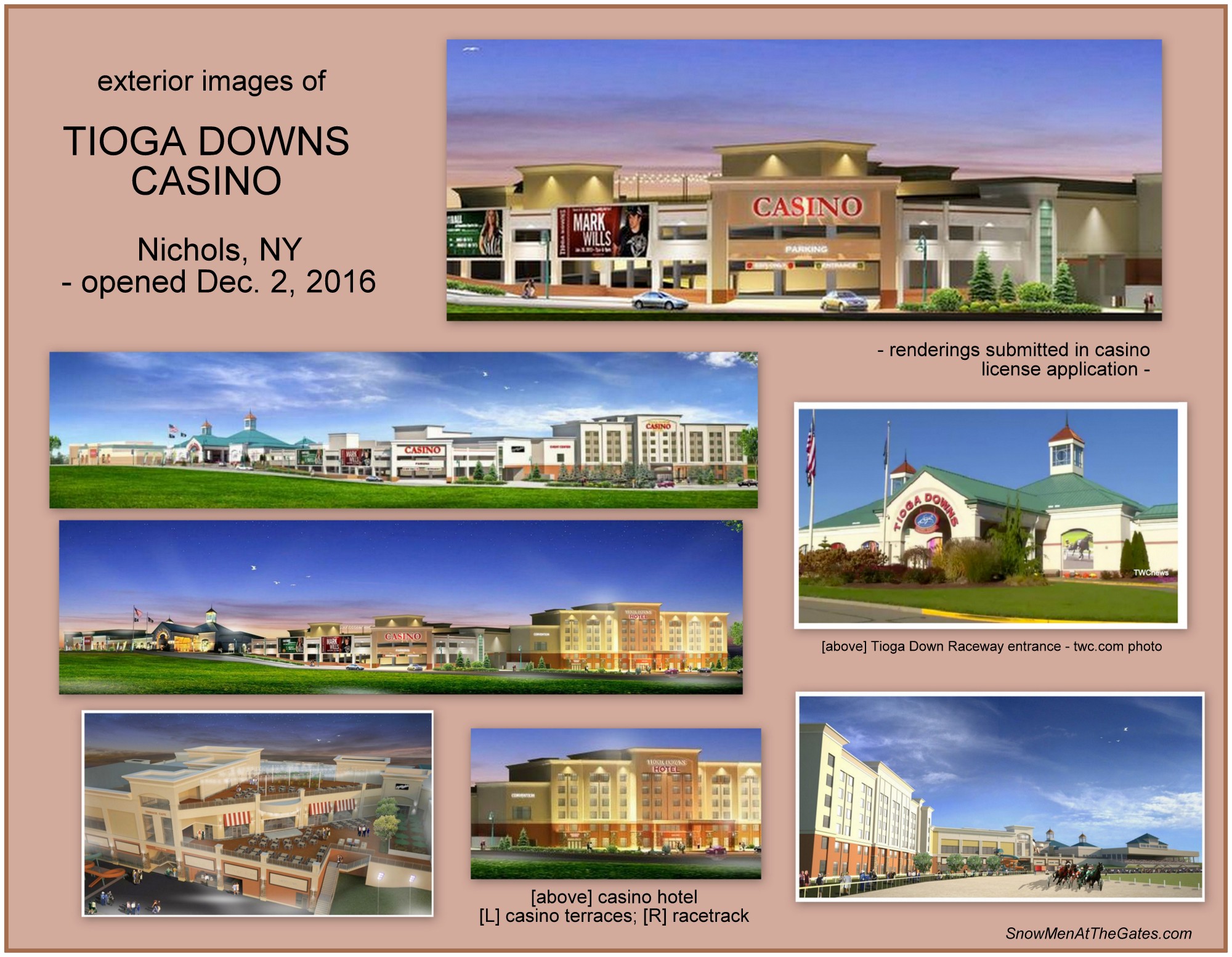 Tioga Downs Casino, in Nichols NY, has been revamped (with a $122 million capital investment) and is already opened (since December 2016) in the Southern Tier, with a “country-fair themed” experience; click the collage to the right for more images of Tioga.