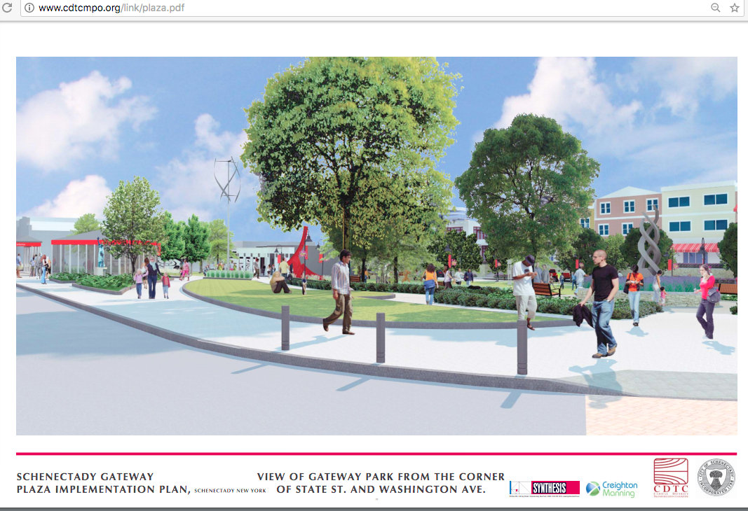 c) That Gateway Plaza is meant to “celebrate the future” of Schenectady. That formulation truncates the original goal written by Wallinger in the Implementation Plan: “celebrate the past, present, and future” of Schenectady. [emphasis added]