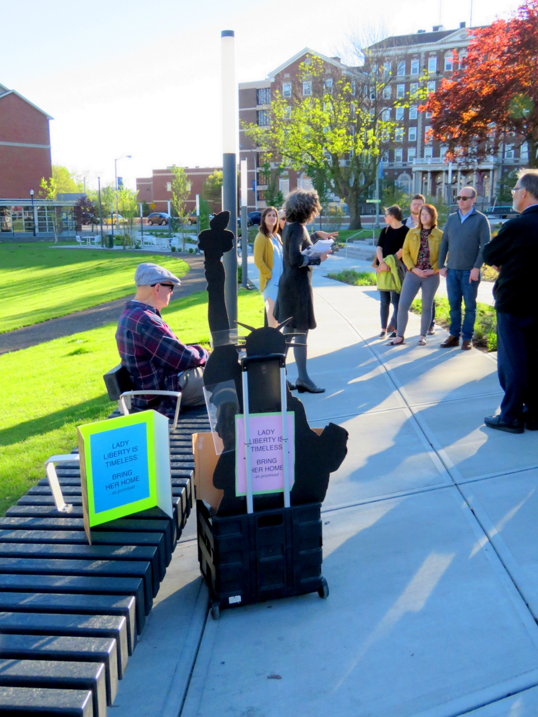 - “Residents . . expressed a strong desire to keep the park’s identity in line with its name: Liberty. The Lady Liberty replica has sat on its pedestal in the park for 62 years would still remain. But it would likely move closer to the State Street border.”