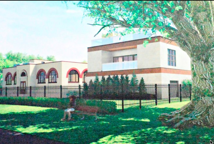 It was a shock to learn, in April 2017, that responsible City officials and contractors instead were going to place a giant new pump station that would take over the West Lawn. After a loud battle, we were assured, by word and rendering, that very little of West Lawn would be appropriated, and that the new pump station would be set back farther from the River than the façade if the Old Pump House, preserving much of the view of that structure from the West. The rendering also seemed to indicate that the century-old grand tree near the northwest corner of the current lot would be preserved. Thus, this rendering, that last shown to the public and Council, was presented in June 2017: