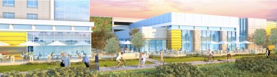. . renderings of rear of Rivers Casino and Hotel: above June 2014; below July 2015 . .
