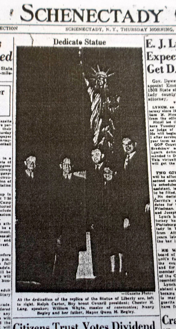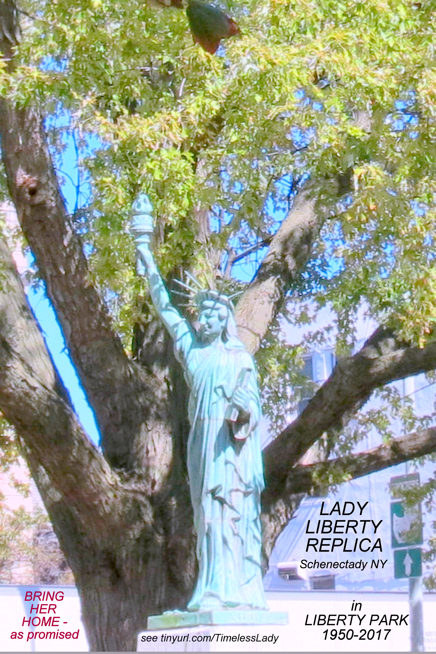 Mayor McCarthy made us wait a couple years, marked first with silence and then silly excuses, before he revealed the current scandalous choice of Erie Blvd. and Union Street for the Exile Location of Lady Liberty, in August 2019. Three years later, the location continues to have no signage denoting the meaning and local history of the Replica, and no plaque telling of its donation by our local Boy Scouts of America and their hopes, as well as no landscaping or floral decorations, as it stands among utility and light poles, without lighting, only a few feet from Smart City surveillance devices.