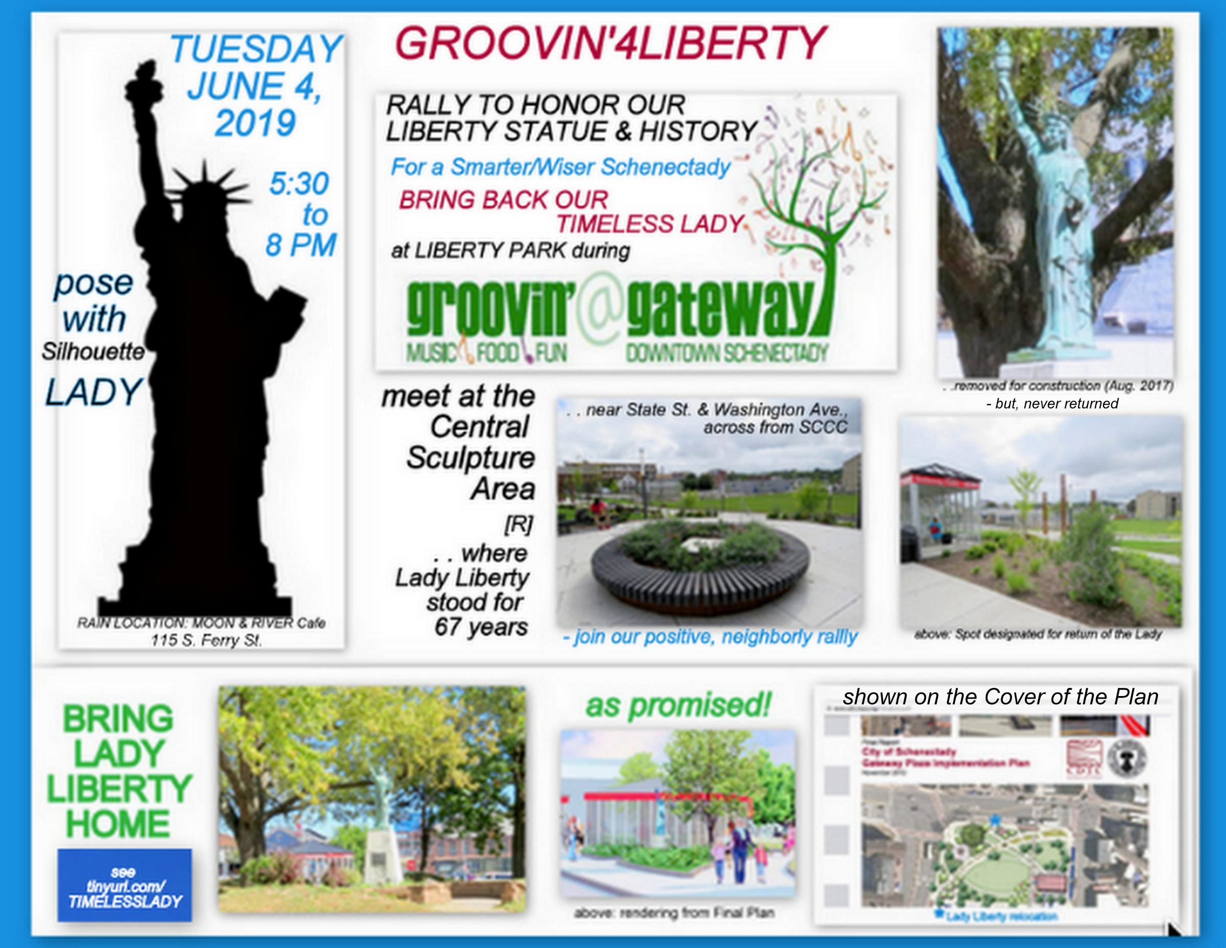 I am, of course a bit biased on this topic, but it is clear to me that the choice of this insignificant sculpture further disrespects Lady Liberty, its history, and the wishes of the public, along with basic principles of good government, planning and transparency. Wallinger told us while presenting the Implementation Plan in 2013 that the sculpture chosen for the Plaza would tell a story about Schenectady’s past, present and future. I’m waiting to hear just what “story” or message this new sculpture is meant to convey at the “gateway” to Schenectady. And, just how it will gain the affection and ability to inspire that Lady Liberty already possesses.