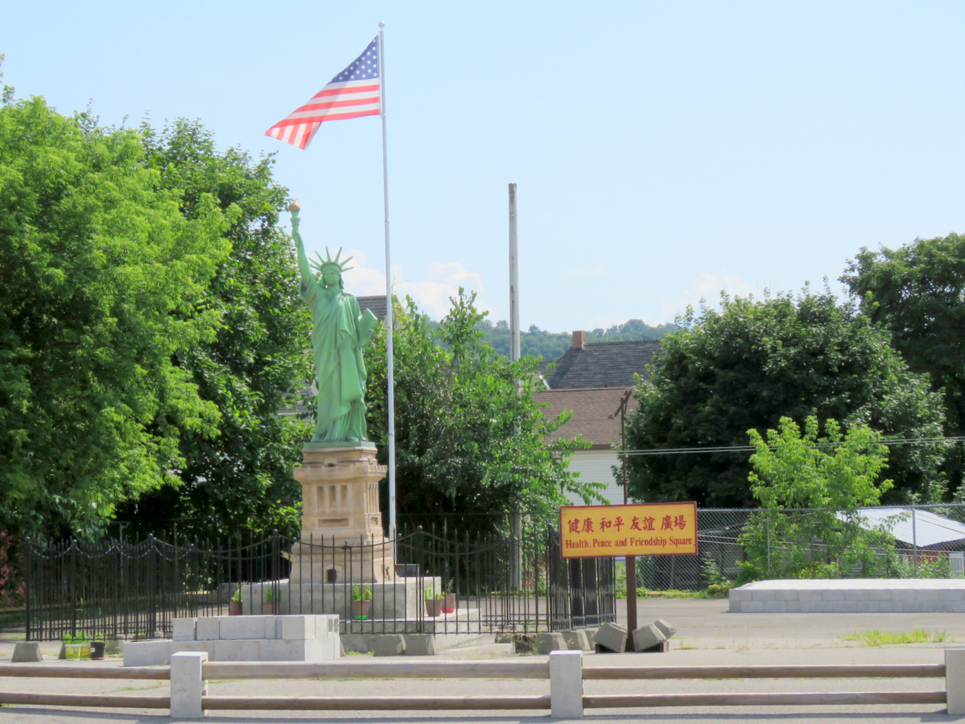 Here are a few images of Lady Liberty in Her park in September 2016, before park reconstruction caused Her removal. The Replica of Liberty has grace and gravitas the new sculpture (see its logo-signature to the right) is unlikely to ever achieve.
