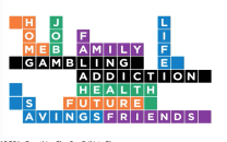 But, the new program’s initial efforts are disappointing, in that they continue the focus on people already struggling with gambling addiction issues. Thus, here are the crossword-style core image and caption used in the PSA and posters, etc.: