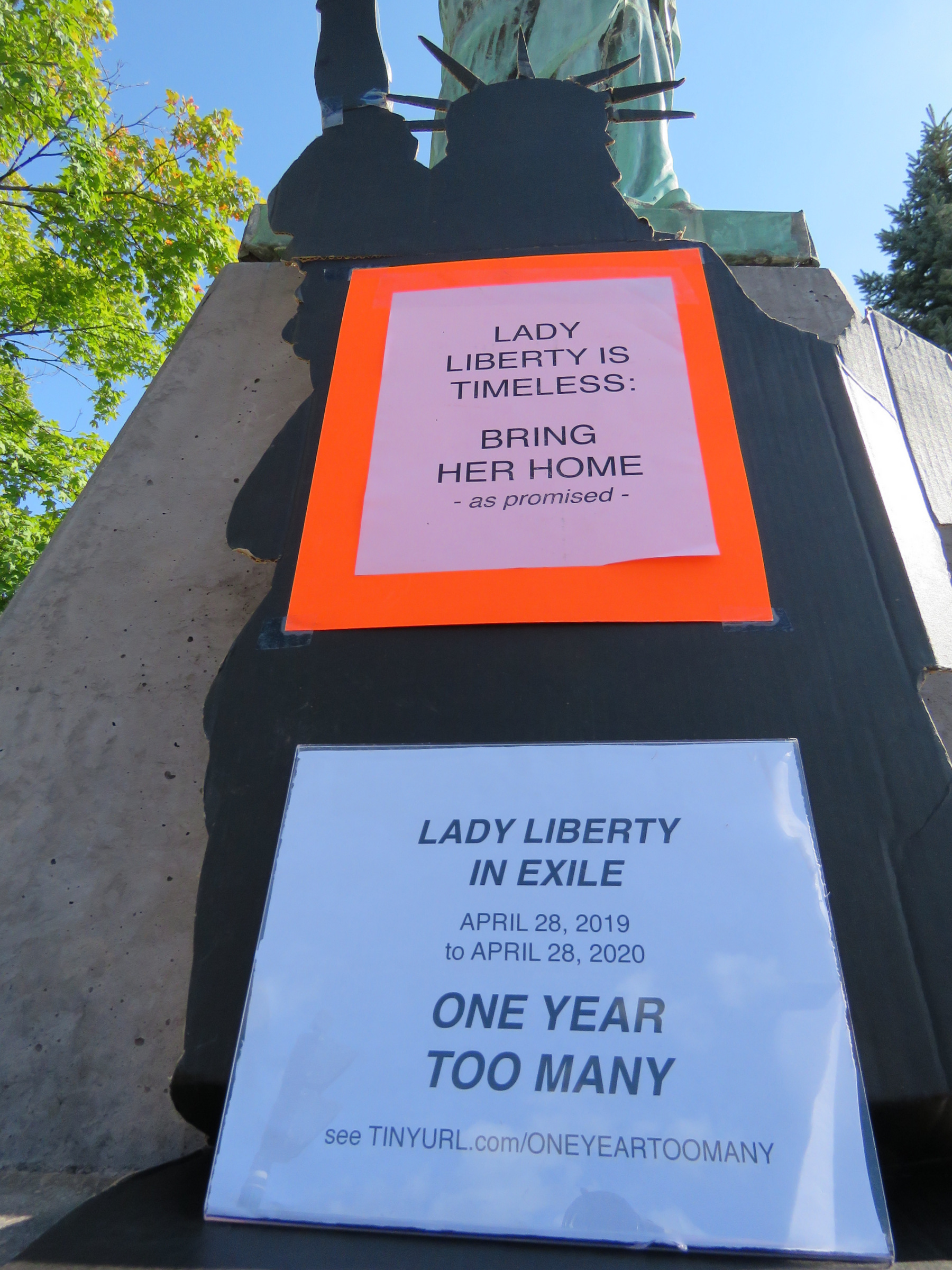 prior update (May 22, 2019): It is eight months since our first Photo-Rally, but not only is Lady Liberty not yet Home at Liberty/Gateway Park, Mayor Gary McCarthy has not bothered to make his decision known as to the future location of our Replica of Statue of Liberty. We are given vague talk of expensive repairs that are needed, but no details or timetable. Therefore, we are again calling for a Rally at Gateway Plaza to ask for the return of Lady Liberty, calling it GROOVIN’4LIBERTY. Click on the “recycled poster” inserted on the Right for a larger version. Please come, and bring a friend or two.