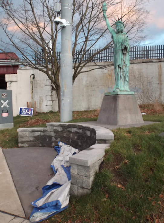 View from West, Dec. 17, 2021: New Pump Station constructed farther to the north and west than originally depicted. obstructing view of Old Pump House and taking up (“alienating”) more of the West Lawn.