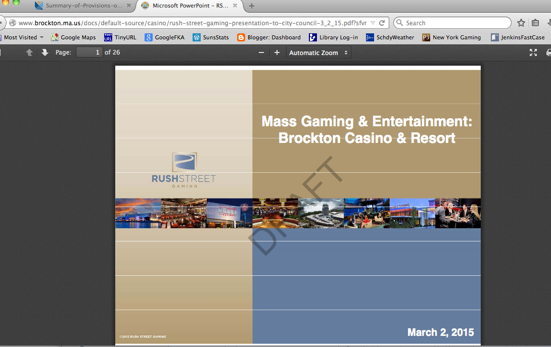 – above screen-shots: Cover & Brockton Benefits page from Rush Street Power Point presentation to Massachusetts Gaming Commission, March 2, 2015 –