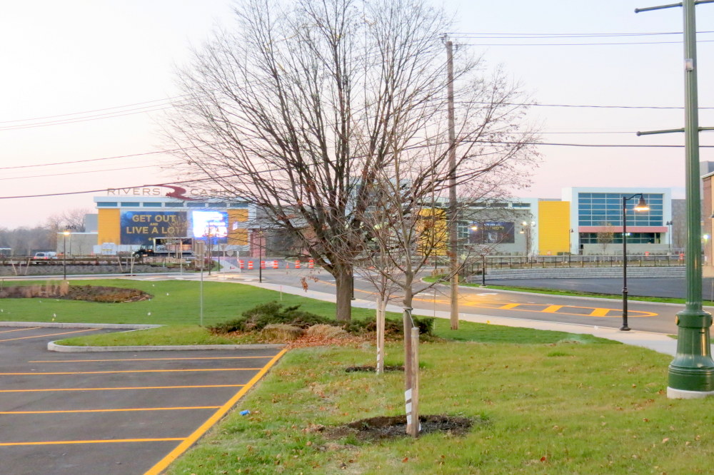 Taste is, of course, very subjective, and I do not expect universal agreement on which casino design is “better,” more attractive, classier, “more tasteful,” most likely to sway potential customers, etc. As a longtime resident of the Schenectady Stockade historic district, a photographer, and sometime haiga-haiku poet, I am especially drawn to things that are visually attractive in a low-key, classical way, but also at times to visually striking scenes. As I have said often over the past two years (e.g., here and there), for my money, Schenectady’s Rivers Casino looks like a flashy-tacky version of a 20th Century shopping mall’s cineplex wing. (Others have pointed out that Schenectady actually has a far more attractive cineplex downtown; and better looking gas stations, too.) It looks like a humdrum regional (maybe even local) attraction; boxes next to or on top of boxes. For me, the competing casinos seem visually much more “attractive” (able to attract).