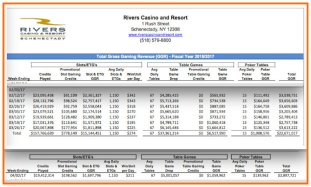 . . you can find the weekly Rivers Casino revenue stats, usually refreshed on Friday morning, here: http://tinyurl.com/RiversSchdyRevs